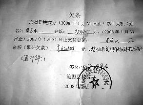 “滄源縣的村民們安居樂業(yè)了,他們的喜悅中有我們永平縣農(nóng)民工的無數(shù)汗水,可是滄源縣扶貧辦拖欠我們的60多萬元工資余款至今還是白條一張。我們承包的工程是扶貧項(xiàng)目,有國家下?lián)艿膶m?xiàng)扶貧資金,兩年來我們不斷去討要我們的血汗錢,可扶貧辦總說沒有錢,那么這60多萬元扶貧資金哪去了?”農(nóng)民工周顯本對此大惑不解。
