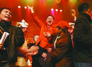 當(dāng)汶川地震災(zāi)民表演的歌曲和舞蹈時(shí),全場觀眾起立致敬!八麄兘(jīng)歷災(zāi)難,但很堅(jiān)強(qiáng)”。河南籍工人小張說,晚會(huì)節(jié)目貼近百姓,也很精彩。