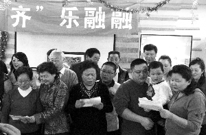 大年初一,北京電視臺(tái)春晚播出的同時(shí),在節(jié)目里亮相的124人大家庭也舉辦了第9屆“家庭春晚”。前晚,在房山一度假村內(nèi),“家庭成員團(tuán)拜會(huì)”的橫幅拉起,一塊大紅綢子鋪開(kāi),每個(gè)到來(lái)的家庭成員都要簽到。家庭成員齊申寅介紹,這是2001年以來(lái)的第9屆“家庭春晚”,124名家庭成員里的五十多人到場(chǎng),年齡最大的92歲,最小的兩歲半。
