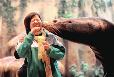 昨天,36名來自四川青川地震災區(qū)的初三學生來到北京海洋館,與海獅、海豚近距離接觸。