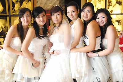 “1,2,3,笑口常開!”昨天上午10點(diǎn)左右,在中華坊附近一大酒店外,5個(gè)打扮得如花似玉的伴娘正拉著新娘照相。原來,這6個(gè)美女情同金蘭,現(xiàn)在其中一個(gè)出嫁,由于5個(gè)都吵著要當(dāng)伴娘,新娘難取舍,最后干脆讓5個(gè)好友全當(dāng)伴娘,陪自己出嫁。