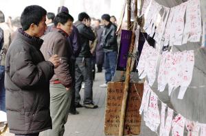 “炸油條,第一個(gè)月1400元,干得好再漲工資。”在溫州路旁,一名手舉招聘啟事的中年男子對(duì)身邊的求職者說。面對(duì)這份待遇優(yōu)厚的工作,不少人上前詢問,可一聽對(duì)方是個(gè)小店且每天的工作量不確定時(shí),馬上打起了退堂鼓,多數(shù)人擔(dān)心不能及時(shí)領(lǐng)到工資。“說的好聽,就怕到時(shí)候扣工資的借口更多。”來自沂水的求職者劉鑫說,自己想找一份月薪1200元、管吃住的工作,這樣一年能攢下近萬元錢。