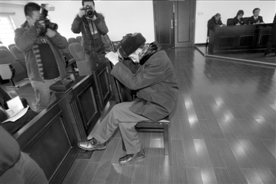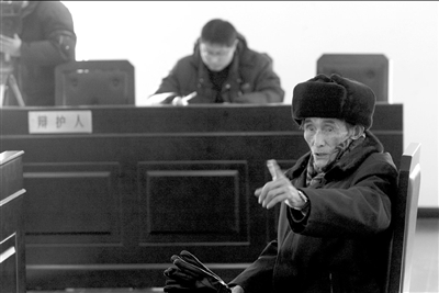 庭審時(shí),99歲老漢周志評(píng)被法官特許坐著受審。聽了一會(huì)兒后,他放松了下來,一度還蹺起了二郎腿。