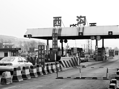 西溝收費(fèi)站共設(shè)置四個(gè)收費(fèi)口,2月7日中午只有兩個(gè)收費(fèi)口開(kāi)通,其余兩個(gè)收費(fèi)口關(guān)閉,并在收費(fèi)口放置了鐵架子。經(jīng)詢問(wèn),一名收費(fèi)員說(shuō):“封閉收費(fèi)口的電腦壞了,剛才正在修電腦!币(jiàn)有人用手機(jī)拍攝被堵車輛時(shí),西溝收費(fèi)站突然沖出了幾名工作人員,讓榆林至神木方向的另外一個(gè)通道開(kāi)始放行。