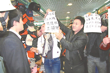 據(jù)了解,上述的一幕已經(jīng)是2月以來,因封攤導(dǎo)致的秀水街市場內(nèi)部的第二次嚴(yán)重沖突。而第一批被封攤的7家商戶目前已經(jīng)以用益物權(quán)糾紛為由,將秀水街市場有限公司和英特普羅知識(shí)產(chǎn)權(quán)代理有限公司的董事長胡棋一并告上了法院。