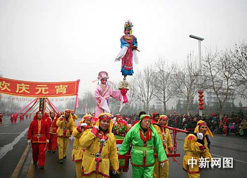 中新網(wǎng)周村2月9日電(記者 鞠成利 楊東亮 通訊員 王帝)今天上午,百年商埠山東省淄博市周村區(qū)元宵節(jié)民間藝術(shù)展演的現(xiàn)場熙熙攘攘,熱鬧非凡。踩高蹺、威風鑼鼓、舞龍燈,以及地方特色周村芯子……來自周村區(qū)4個街道辦事處20多個社區(qū)的民間藝術(shù)表演隊伍紛紛拿出自己的看家本事,為全區(qū)百姓帶來一場聲勢浩大、喜氣洋洋的元宵節(jié)民俗盛宴。