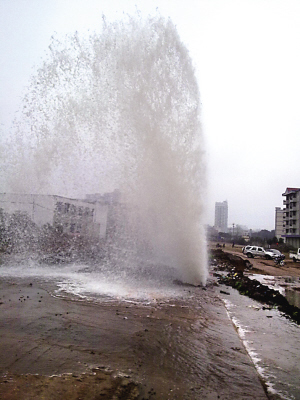 “先是聽到吱吱吱地響,馬上要到10點(diǎn)時(shí),突然‘砰’的一聲后,一股水柱就沖上天了!60多歲的黃婆婆當(dāng)時(shí)在現(xiàn)場(chǎng),據(jù)她介紹,沖天水柱有人的大腿粗細(xì),“起碼有十多米高。”