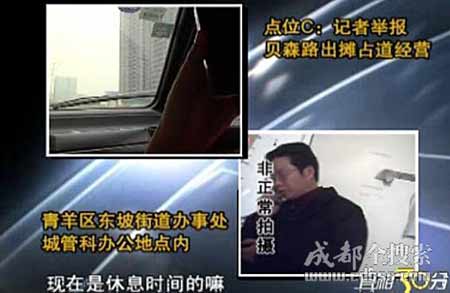 近日,成都電視臺《真相30分》欄目組接到神秘舉報電話。對方舉報城管收取好處費,對出攤占道視而不見。對此,記者專門進行了暗訪。成都全搜索網(wǎng)站記者通過影像資料發(fā)現(xiàn),城管執(zhí)法人員不僅有對出攤占道經營故意睜一只眼閉一只眼的嫌疑,還暴露了城管管理缺失的問題。