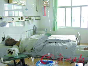 據工廠保安介紹,該名自殘男子與公司領導譚先生發(fā)生了激烈爭吵,見爭吵沒有結果,方先生便拿起一瓶天那水往身上淋,然后用打火機點著衣服。保安趕快拿來滅火器幫他滅火,但最后還是被嚴重燒傷,方先生目前已經脫離生命危險。 (記者阮曉光攝影報道)