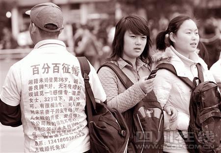 王錫國是湖南永州人,今年37歲。他一直在廣州物流企業(yè)打工,由于交際圈子比較窄,婚姻大事一直沒解決。后來,他在多家婚介所登記,沒想到一次次被人騙。為此,他專門設(shè)計了這件T恤衫,周末就來到全國各地的步行街征婚。