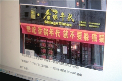 據(jù)悉,2月22日上午,這家飯店在大門(mén)外懸掛了“想吃香鍋年代,就不要躲貓貓”的橫幅,有路過(guò)的市民將這一橫幅拍照,并發(fā)布在了貓撲等各大網(wǎng)絡(luò)論壇上,引發(fā)眾多網(wǎng)民熱烈討論。