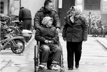 街坊們經(jīng)常用各種辦法幫助這個家:女兒的學(xué)費是鄰居們湊的,經(jīng)常給他們送衣服、送飯,為了能讓曹青云站起來,還幫他們申請了全額低保,拉到贊助單位幫她定做了一個輪椅。