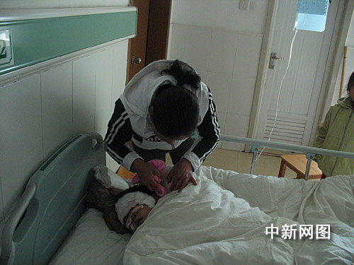 陳尚瓊老人稍清醒些,但也只能躺在床上,還不怎么能說話。剛剛趕來的女兒看著病床上滿面?zhèn)鄣睦夏赣H心疼不已。