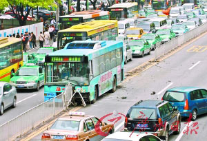 昨日(7)中午12時(shí)許,在廣州天河區(qū)崗頂公交車(chē)站前等車(chē)的趙先生目睹了電影中才會(huì)發(fā)生的一幕:一輛298路公交車(chē)猛地沖向馬路中間的護(hù)欄,滑行了近30米后才停下來(lái)。強(qiáng)大的沖擊力將十余個(gè)鐵制護(hù)欄連根鏟起。車(chē)上當(dāng)時(shí)載有四五十名乘客,但只有司機(jī)受傷。據(jù)了解,該事故的起因竟是區(qū)區(qū)6元的車(chē)資找零。