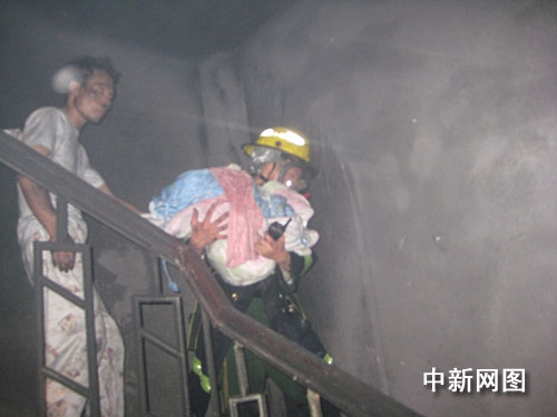 了解情況后,指揮員立即命令官兵迅速展開滅火營(yíng)救行動(dòng),鋪設(shè)兩支水槍進(jìn)行滅火,及時(shí)消滅樓梯口的火勢(shì)和濃煙,兩名官兵佩戴空氣呼吸器順著樓梯間深入樓內(nèi)救人,將13名被困人員分批救出,其中有一個(gè)2個(gè)月的嬰兒。經(jīng)過(guò)1個(gè)多小時(shí)的奮勇戰(zhàn)斗,大火被撲滅,被困的居民也全部被救出。