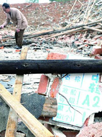 上午10時許,記者在爆炸現(xiàn)場看到,一個6平方米的火藥中轉(zhuǎn)車間已被夷為平地,瓦礫堆上散落著幾個燒焦的藥桶,附近的樹枝上掛著瓦礫碎片。所幸的是,距中轉(zhuǎn)車間20多米外的一個制造車間未受殃及,里面的工人安然無恙。