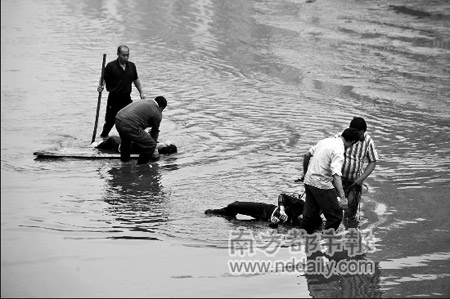 隨后,吳松濤也翻過護(hù)欄跳下水。