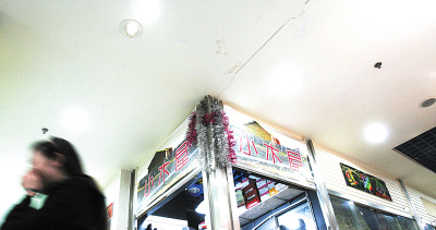 昨日中午,記者在現(xiàn)場(chǎng)發(fā)現(xiàn),其主要通道和許多門市的墻面上開(kāi)始清晰地出現(xiàn)大小不一的裂縫。“感覺(jué)像每天都在經(jīng)歷地震!贝笃航鹣笫兰业叵律虉(chǎng)C區(qū)105號(hào)商戶趙庭明指著頭頂附近的一條裂縫說(shuō),前天上午,巨響突然傳來(lái),一位恰巧經(jīng)過(guò)的老太以為發(fā)生地震嚇得當(dāng)即蹲倒在地。