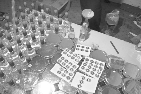 去年11月底,江蘇省南京市公安局接到市質(zhì)監(jiān)局棲霞分局移交的案件線索稱,在棲霞區(qū)馬群花崗村有一批湖北人正在從事生產(chǎn)偽劣國(guó)產(chǎn)名牌白酒的違法犯罪活動(dòng)。接報(bào)后,市公安局治安支隊(duì)迅速成立專案組開展工作。今年1月8日凌晨,指揮部一聲令下,300多名民警兵分七路,一舉抓獲100多名制販假酒的犯罪嫌疑人,從而成功偵破這起以張某、寧某、董某為首,糾集湖北同鄉(xiāng)結(jié)成的特大制販假酒團(tuán)伙案件,當(dāng)場(chǎng)查扣假冒各類高檔白酒3000余瓶,收繳各類違法所得共計(jì)人民幣66萬(wàn)余元,查封用于制假的各類材料10萬(wàn)件及一大批封口機(jī)、打碼機(jī)等制假工具。