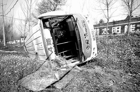 昨天上午9時(shí)40分,平頂山市一輛4路公交車在曹鎮(zhèn)杜莊村自西向東行駛時(shí),與迎面駛來的一輛車錯(cuò)車時(shí)發(fā)生翻車事故。