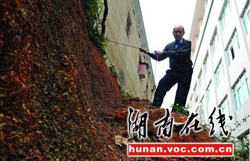 在湖南工程職業(yè)技術(shù)學(xué)院,記者采訪了參與前期拆遷事宜的朱姓工會(huì)主席。談及此事,他也是不斷搖頭!瓣P(guān)于房屋的補(bǔ)償我們是傷透了腦筋,老吳家不斷加價(jià),學(xué)院無(wú)所適從!敝旖榻B說(shuō),與老吳家一墻之隔的是學(xué)院新建的教學(xué)樓,因?yàn)椴疬w受阻,教學(xué)樓只好修改規(guī)劃!昂笠屏私5米,看起來(lái)歪歪的。”