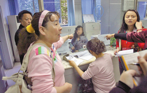 昨日上午9點半,醫(yī)療保險管理中心渝中區(qū)分中心二樓接待大廳內(nèi)人頭攢動,在一號窗口前排隊等待辦理業(yè)務(wù)的市民多達(dá)14人,但隊伍卻不曾向前移動半步。因為一號窗口內(nèi)根本不見工作人員的身影,這些市民從上午9點開始已經(jīng)守著空窗排了半小時。