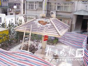 記者在該小區(qū)看到,一架爬梯搭在涼亭頂部,廢磚石塊散落一地,周圍用帆布圍起來,涼亭頂部露出兩個直徑約一米寬的大窟窿,柱子底部已經(jīng)被人鑿出凹面。該小區(qū)物管公司負(fù)責(zé)人對記者說,涼亭是上個月下旬被小區(qū)一姜姓女業(yè)主砸毀的,帆布和告示牌都是她設(shè)置的!凹依锇l(fā)生一連串怪事,后來聽人說都是因為這個涼亭壞了風(fēng)水!38歲的姜女士對記者說,前年4月份她在該小區(qū)買了現(xiàn)在居住的房子!叭ツ8月份,小姑子12歲的兒子,星期天外出開電瓶車,出了交通事故,把腿撞斷了,一年后才把腿傷治好。還有去年丈夫在上海做廢鋼生意,虧了幾百萬元。另外,我有心臟病,身體一直不好……”姜女士說,一連串的不幸讓她心情變得壓抑。后來,她聽人講,小區(qū)里的涼亭正好對著她家陽臺的窗戶,壞了家中風(fēng)水。于是,她于2月24日喊人把小區(qū)涼亭砸了。