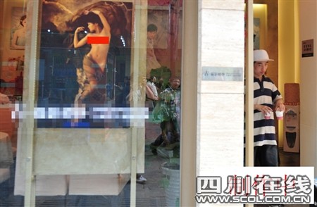 昨日,有讀者向記者反映,在成都春熙路南口一家攝影店的櫥窗里,有一張大幅的女子半裸照片,吸引了不少路人的注意,這對(duì)小孩子容易造成不好的影響。記者來(lái)到該攝影店進(jìn)行求證,發(fā)現(xiàn)確有其事。對(duì)此,店里的工作人員覺得這僅僅是一張藝術(shù)照片,他們對(duì)讀者所提的問(wèn)題感到很無(wú)奈,但同時(shí)也表示將盡快換掉該照片。