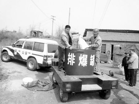 安陽縣銅冶鎮(zhèn)一男子因打工太累,自己研制雷管炸藥,自去年3月至今,私造雷管8000余枚,炸藥200余公斤。昨日上午,民警開著排爆罐車將爆炸物品運(yùn)出并進(jìn)行了銷毀(如圖)。