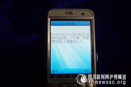 3月31日下午4點(diǎn)40分,瀘州市江陽區(qū)北城派出所接到群眾報(bào)警稱,一家商行女老板遭遇一個(gè)帶內(nèi)江口音的男子恐嚇:“3000元買你一只手臂,等你的手臂不動(dòng)了,你就知道我是誰了!蹦壳,警方已介入調(diào)查。是為情所困,還是因財(cái)生異,亦或另有隱情?