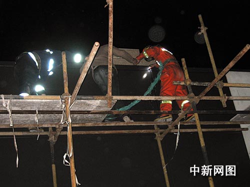 中新網(wǎng)寧波4月2日電(見習(xí)記者 何蔣勇 實習(xí)生 屠建達)今天下午寧波市鄞州區(qū)一工地發(fā)生了一起跳樓未遂事件。本網(wǎng)記者迅速趕往現(xiàn)場,終于在19點31分左右,跳樓男子被消防官兵安全轉(zhuǎn)移到頂樓平地。