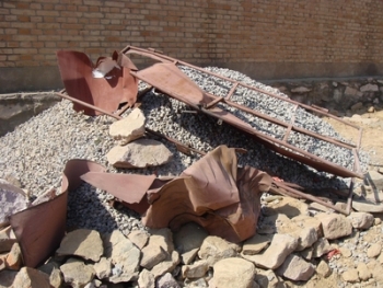 4月8日上午,記者聞訊趕往崇禮縣高家營鎮(zhèn)南地村。事發(fā)地位于該村村民陳某的家門前,在現(xiàn)場,記者看到,陳家已經(jīng)嚴(yán)重扭曲變形的鐵皮大門被卸下來扔在一旁,大門僅剩下了一個磚混結(jié)構(gòu)的門框,該門框的上端也已出現(xiàn)了很寬的裂縫。陳家平房的門窗也被震壞。從現(xiàn)場的情形可以想見當(dāng)時爆炸的沖擊力巨大。