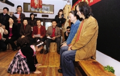 曾先生(市民):我認為這是一種文化的回歸,一種民族自我的回歸。行跪拜之禮,不在于形,但可以通過形式對中國古代經(jīng)典文化進行繼承。這種跪拜之禮,有人可能會說它是糟粕,但是,是否糟粕,誰來定論?為什么跪拜之禮就是糟粕?現(xiàn)在好多地方過年時,晚輩給長輩拜年也是跪著的呢。
