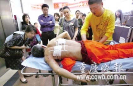 昨日下午5點,環(huán)衛(wèi)工魏泉茂被送到市急救中心搶救。他背部雙側(cè)被砍傷,最深處為5厘米,肩胛骨被砍斷,幸無生命危險。據(jù)魏泉茂說,當時他在凱旋路附近做清潔,一輛灰色轎車欲停在他正在清理垃圾的地方。魏泉茂表示,等清掃干凈了再讓開。雙方爭吵起來。隨后,魏泉茂推著垃圾車來到了儲奇門垃圾站對面。一名男子突然持刀沖向他,一來就是兩刀。隨后,男子招下一輛出租車逃跑。魏泉茂說,砍他的人就是與自己爭吵的那名司機。目前,儲奇門派出所正在調(diào)查此案。(朱雋 龍珊)