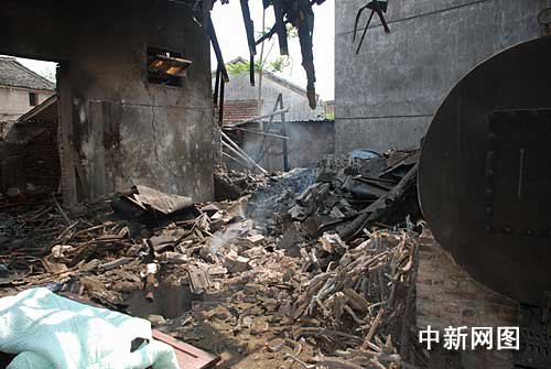 由于爆炸產(chǎn)生的巨大沖擊力,事故現(xiàn)場(chǎng)一片狼藉,到處都是破碎的磚瓦,房子的屋頂也因?yàn)楸〞r(shí)產(chǎn)生的沖力給震碎,現(xiàn)場(chǎng)不時(shí)的有破瓦掉落。同時(shí),記者從圍觀群眾處了解到,事故發(fā)生時(shí),在旁邊作業(yè)的一工人正被壓在碎瓦堆里,被壓著已有半個(gè)小時(shí),生死未卜。
