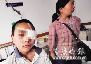 昨日,在墊江縣人民醫(yī)院第一分院眼科病床上,13歲的小武左眼蒙著厚厚的紗布。他剛做完手術,神情充滿恐懼。小武的母親胡榮芬說,他們是農(nóng)村人。孩子主要由婆婆爺爺照看。因為有睡覺打鼾的毛病,孩子性格內(nèi)向自卑。