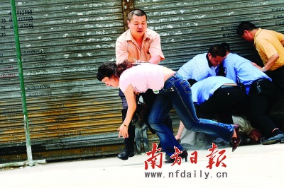 11時(shí)30分,人群中響起一陣驚呼———在張×述感到疲倦之際,一名便衣警察乘其不備按住了張持刀的手,手中的刀順勢(shì)滑落。