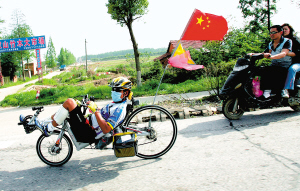由于不好打擾騎車人的“騎興”,記者只能在與其短暫并行時(shí)了解到,他來自北京,準(zhǔn)備就這樣一直騎到深圳。問起他在武漢境內(nèi)的騎行的感覺,他高高豎起了大拇指。記者與他分手繼續(xù)做了相關(guān)采訪,才知道這位北京哥們兒可不是什么“怪物人”,他的座駕的專業(yè)名稱叫“躺車”,在國外已經(jīng)風(fēng)靡了近一個(gè)世紀(jì),擁有了一大批愛好者!疤绍嚒卑l(fā)力依靠的是腳力和腰力,比一般的自行車更省力、更舒服。一輛高質(zhì)量的“躺車”至少也要1200美元。如今國內(nèi)各地也開始出現(xiàn)不少“躺車”發(fā)燒友,他們大多自己DIY,還成立了聯(lián)誼會,開展專業(yè)比賽呢。(記者張寧)
