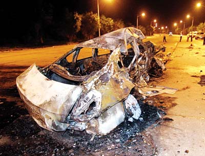 事故發(fā)生后,記者接報(bào)趕到現(xiàn)場(chǎng)發(fā)現(xiàn),被撞后嚴(yán)重扭曲變形的“天籟”小轎車(chē),已燒剩一副骨架,車(chē)尾部仍在不停地冒煙,現(xiàn)場(chǎng)彌漫著一股刺鼻的焦臭味;而離該車(chē)尾部左邊約七八米外的雙黃線旁,橫臥著一具身穿紅色上衣的男子尸體;該車(chē)內(nèi)右側(cè)座位上也有一具已被燒焦的尸體。