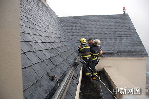 紹興市越城大隊(duì)官兵接到報(bào)警電話后趕到現(xiàn)場(chǎng),只見輕生者跨坐在兩房間的對(duì)角處,身體不時(shí)地顫抖著,嘴角已經(jīng)凍的發(fā)紫。加上一直下著雨,樓面較滑,一不小心就會(huì)失足滑下,后果不堪設(shè)想。