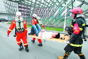 號(hào)稱“三湘第一高樓”的荷花園電信大樓39層突然冒出滾滾濃煙。接到報(bào)警后,長(zhǎng)沙市消防支隊(duì)迅速調(diào)集消防車趕赴現(xiàn)場(chǎng)……昨日下午,消防支隊(duì)在荷花園電信大樓進(jìn)行了高層建筑防火演練,再次檢測(cè)了我市消防部門撲救高層建筑火災(zāi)的能力。