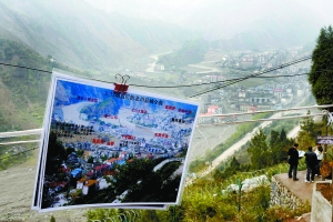 在孟青川的照相攤位邊,19歲的夏春菊正在賣紀念品。夏春菊有個16歲的弟弟,地震時不幸遇難。夏春菊賣的照片10元3張,其中一張清楚地標著她弟弟生前就讀的茅壩中學的位置。