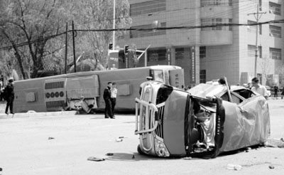 因大巴車司機也在車禍中受傷,記者沒能向他核實車禍起因。目前,警方已經(jīng)介入,車禍的真正原因正在進一步調(diào)查中。 (本報主任記者 劉強 實習(xí)生 王健 攝影 主任記者 沈生)