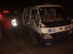 昨日,?诮痪ш(duì)事故處理大隊(duì)的陳警官說,“車上印有‘行政執(zhí)法’字樣,且是1.25小型卡車。根據(jù)目擊市民的反映,我們連夜對(duì)海口城管部門的行政執(zhí)法車輛進(jìn)行排查。”