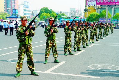 警戒 武警不約而同拉下槍栓