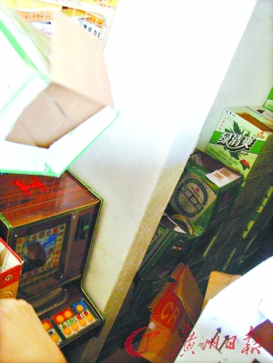 在一家叫“祥瑞豐”的百貨店里,小店內(nèi)一名女工作人員,還領(lǐng)著記者來到店內(nèi)偏僻處。她掀開層層廢紙板后,露出一臺(tái)藏匿其中的老虎機(jī),“他們讓我偷偷藏在這里的”。