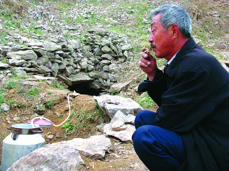 “十米深的水井不能用,我后來又打了個20米的井,發(fā)現(xiàn)打上來的水也還是這樣!眲⑷耆A對記者說。從去年開始,他就每天傍晚騎著摩托車載一個水桶到離家四里地外的南山上帶水吃。他和老伴幫在外地打工的兒子、媳婦照看孩子,兩口子去年回來發(fā)現(xiàn)水里的雜質(zhì)越來越多,堅決不敢讓孩子喝了,說要買大桶水,但是老劉覺得大桶水太貴,所以就開始從山上取水。