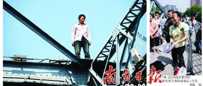 海珠橋,儼然成了“跳橋圣地”,F(xiàn)場幾位媒體同行揶揄說,全城應(yīng)該集體封殺海珠橋。是的,同樣是這個殘疾男人道出了大多數(shù)跳橋者的心聲,“只有這里,才能吸引社會的關(guān)注!泵恳淮魏V闃蛱鴺蛐,全城媒體幾乎都要出動。