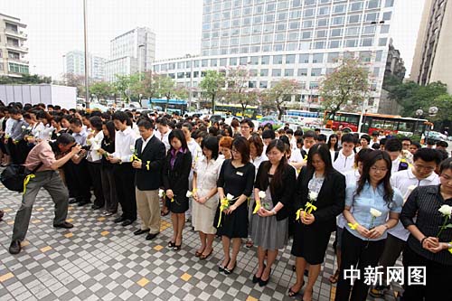 中新網(wǎng)廣州5月12日電 (記者 莫非 通訊員 楊明釗 黃永威 劉慧儀)由廣東多家新聞機構(gòu)和安利(中國)公司主辦的“5.12大地震周年影像展”,已經(jīng)在廣州市解放北路以太廣場安利越秀店鋪門前展出了5天,5月12日下午14時28分,上千名廣州市民與安利志愿者自發(fā)來到周年影像展現(xiàn)場悼念地震受難同胞。