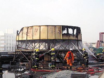 在救火過(guò)程中,附近一在建的高層建筑有多名工人仍在施工。當(dāng)?shù)卣醪綉岩,起火和這一高層建筑施工有關(guān)!笆┕る姾笗(huì)冒出火花,被風(fēng)吹到冷卻塔上,引起大火”。起火原因正在進(jìn)一步調(diào)查中。(記者黃玲攝影報(bào)道)